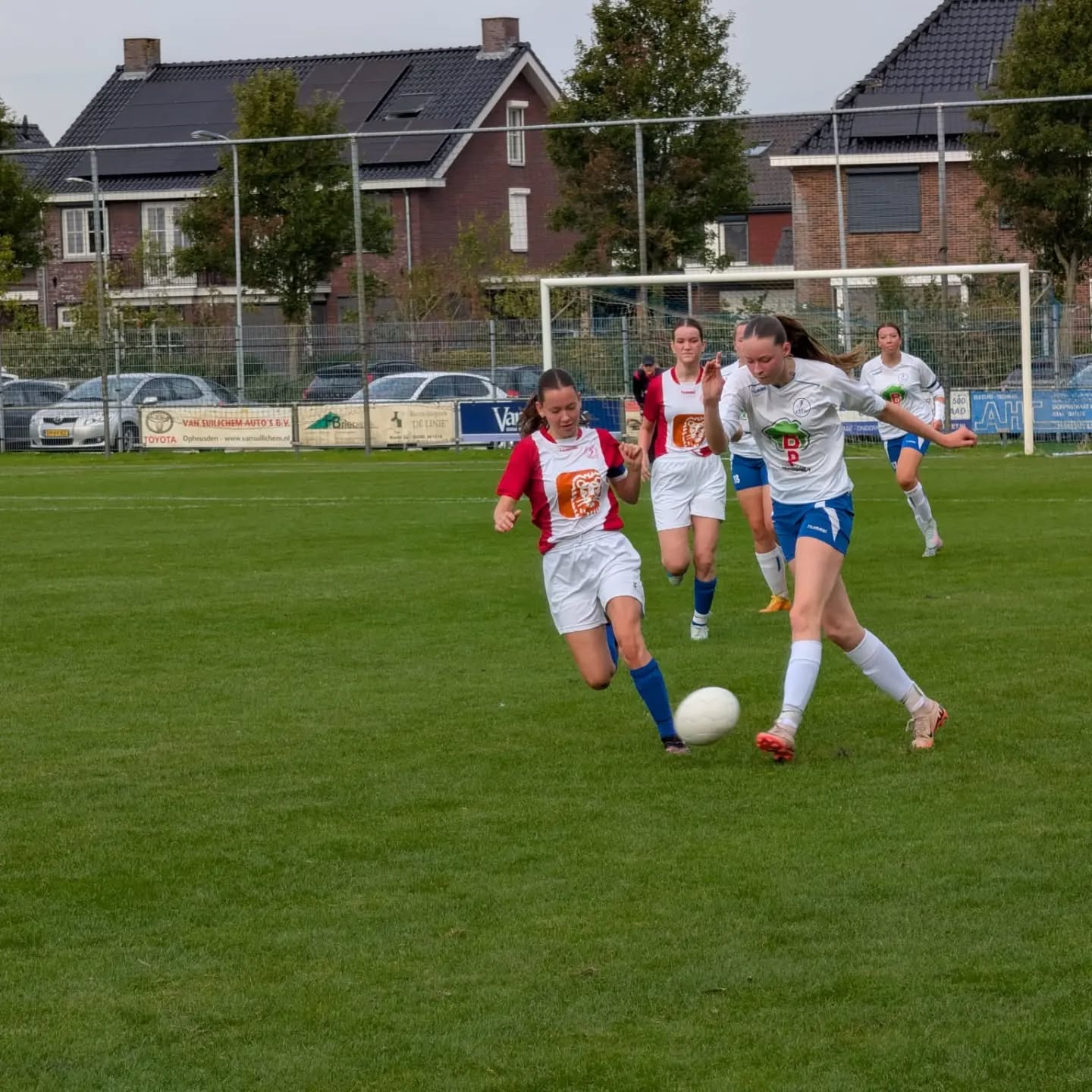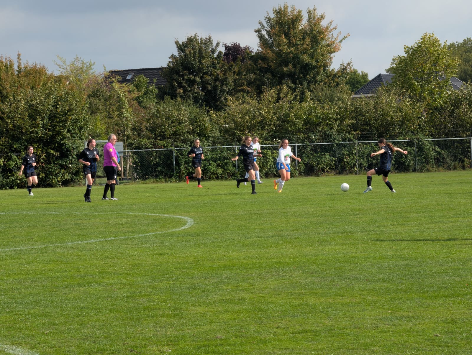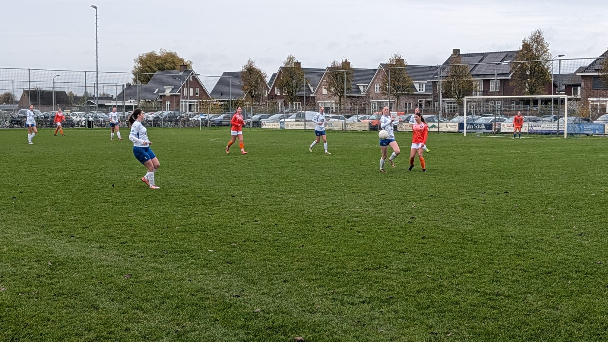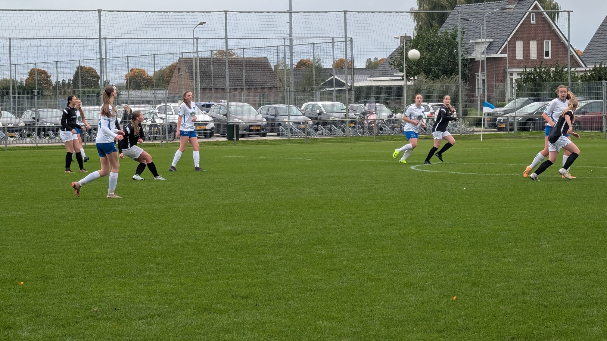 In de tweede helft brak Emma met een hoge droge knal de wedstrijd open door de 1-0 binnen te schieten. Het spel beleef op en neer golven. Uiteindelijk wisten de gasten doelvrouw Serona toch te verschalken, 1-1 Na negentig minuten floot de leidsman deze boeiende wedstrijd, die terecht in een puntendeling eindigde, af